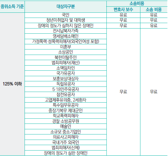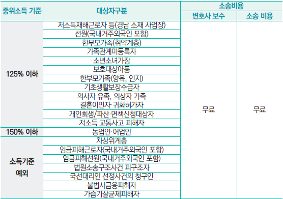 ⓑ 소송 서류 무료 작성(단, 1,000만 원 이하의 간단하고 명백한 사건)