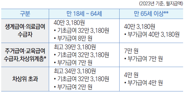 ※ 만 65세 이상 시에는 장애인연금 기초급여 대신 기초연금으로 전환(별도신청 필요)
